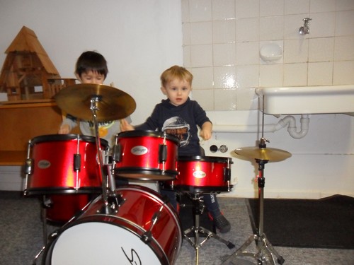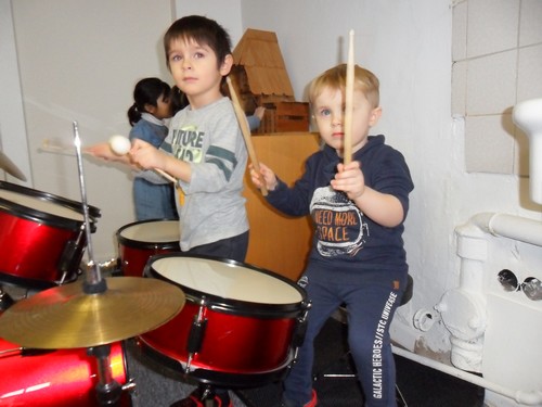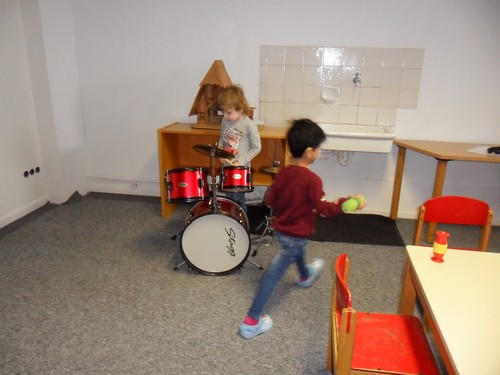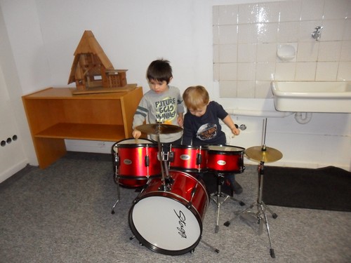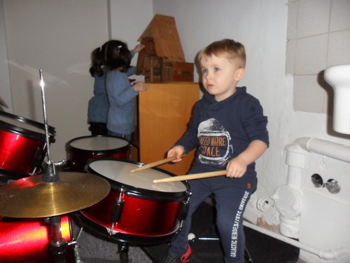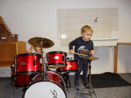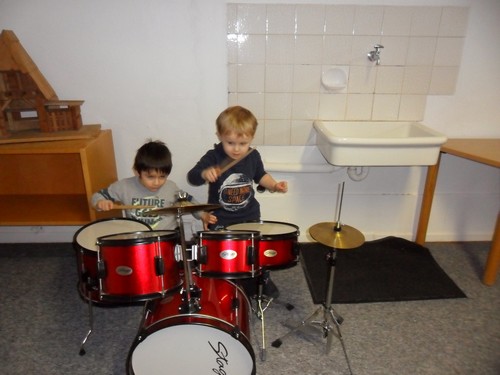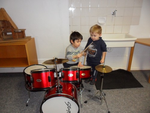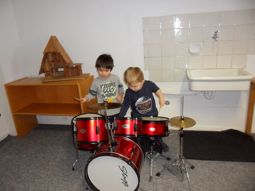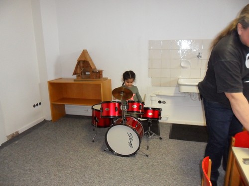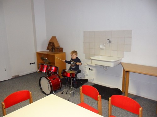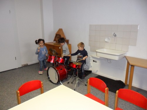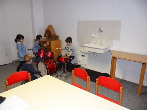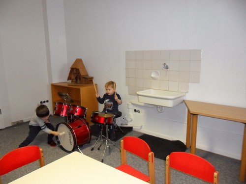 Probierten die Kita-Kinder zunächst unsere Musikinstrumente im neu gestalteten Musikraum der Kita unter Anleitung von Ingo Kramer (Musikschmiede)